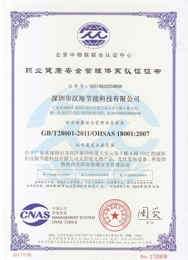 深圳市漢海節(jié)能科技有限公司成立于2011年,注冊資金6000萬元,總部設在深圳,是一家集設計、研發(fā)、施工于一體的專業(yè)化從事太陽能中央熱水工程、熱泵中央熱水工程、中央空調、光伏發(fā)電、水處理等新能源及節(jié)能環(huán)保行業(yè)的綜合服務商和工程商。在將近10年的發(fā)展歷程中,始終走在行業(yè)發(fā)展的前沿,是專業(yè)從事太陽能光熱、光伏,空氣源、太陽能熱水工程、水源熱泵,中央空調,水處理產(chǎn)品的設計、安裝、售后服務為一體的高新技術企業(yè);是專業(yè)提供太陽能中央熱水工程、熱泵中央熱水工程、中央空調工程、光伏發(fā)電工程、水處理工程、太陽能熱水工程等全面解決方案的供應商和工程商,產(chǎn)品涵蓋太陽能集熱器、空氣源熱泵、水源熱泵、中央空調、光伏組件、太陽能熱水工程等,是新能源的倡導者和推動者。公司成立以來,始終秉承“誠信、責任、專業(yè)、高效”的服務宗旨,以市場需求為導向,以為客戶創(chuàng)造價值為己任的精神,不斷開拓創(chuàng)新,通過多年的快速發(fā)展,公司綜合實力躍居行業(yè)前列。漢海擁有一支經(jīng)驗豐富、善打硬仗的專業(yè)高效團隊;擁有一批專業(yè)的高級工程師、中級工程師、二級建造師、造價工程師、電氣設計師、給排水設計師;擁有一批機電、安防、水、電等專業(yè)技術施工和售后人員,配備先進齊全,實力雄厚,技術領先。漢海以質量樹信譽、以工藝立標桿、以管理創(chuàng)效益、以服務得人心,工藝水平在業(yè)界獨樹一幟,成為行業(yè)模仿的典范。漢海承建的機電工程(設計、施工)涉及星級酒店、賓館、高檔辦公樓、花園別墅、住宅小區(qū)、學校、水療中心、工廠等各種類型的工程,工程項目遍布全國各地。漢海將致力于成為全球信賴的新能源綜合服務商,為客戶提供新能源的全方位解決方案。未來,漢海將依托國家政策,積極開拓粵港澳大灣區(qū)、中國特色社會主義先行示范區(qū)市場及“一帶一路”沿線國際市場,推動新能源的新輝煌。